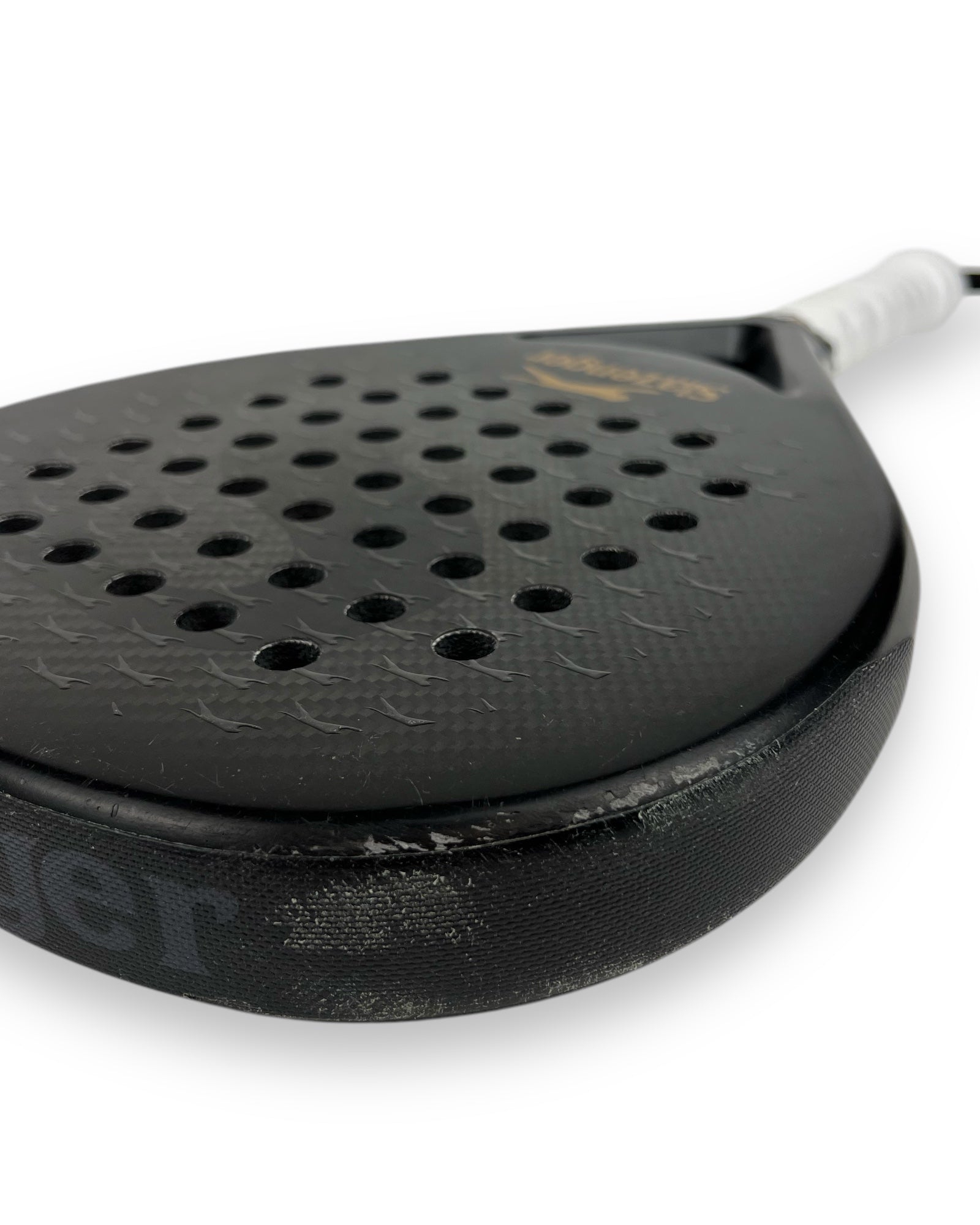 Racket är handgjort i Barcelona, Spanien med högsta kvalitet. Det reducerar även vibrationer på ett effektivt sätt vilket gör att skaderisken i armbågen reduceras.