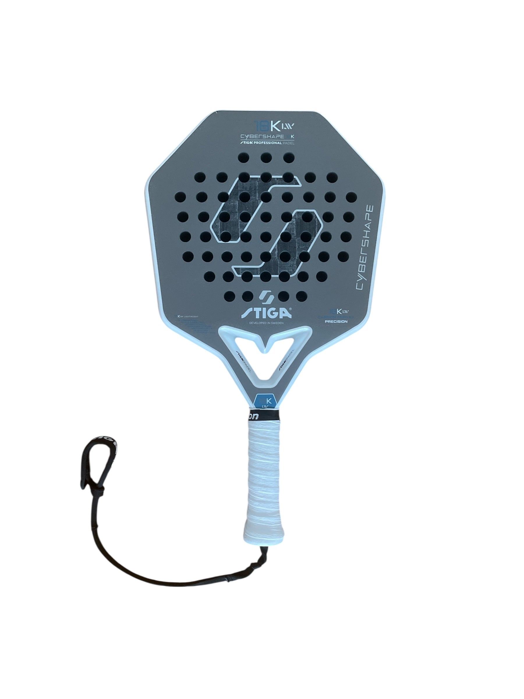 Är du ute efter ett lättare padelracket som ändå ger dig total kontroll? Då ska du titta närmare på Cybershape 18K LW. Den här lättare tvillingen till Cybershape 18K ger dig samma oslagbara känsla av kontroll vid kontaktpunkten och en mjukare bollträff, men väger mindre och är enklare att manövrera. Den låga balanspunkten ger dig en skön känsla av kontroll i armen, och det förstärkta kolfiberlagret och den exklusiva silverbehandlingen binder ihop väven och skapar en träffyta som gör att du kan spela med finess utan att behöva kompromissa med fart eller precision.